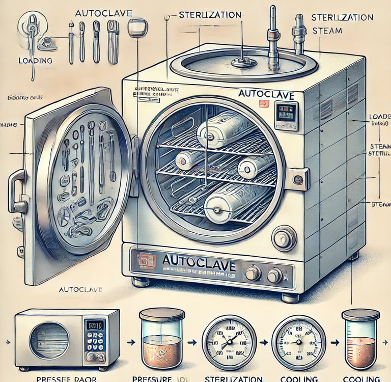 An autoclave is a steam-based sterilization device that operates at high temperatures and pressures to disinfect and sterilize materials. It is widely used in: